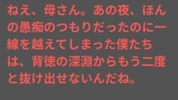 ノベル ねえ、母さん。あの夜、ほんの愚痴のつもりだったのに一線を越えてしまった僕たちは、背徳の深淵からもう二度と抜け出せないんだね。【d_739644】【ママスキ】
